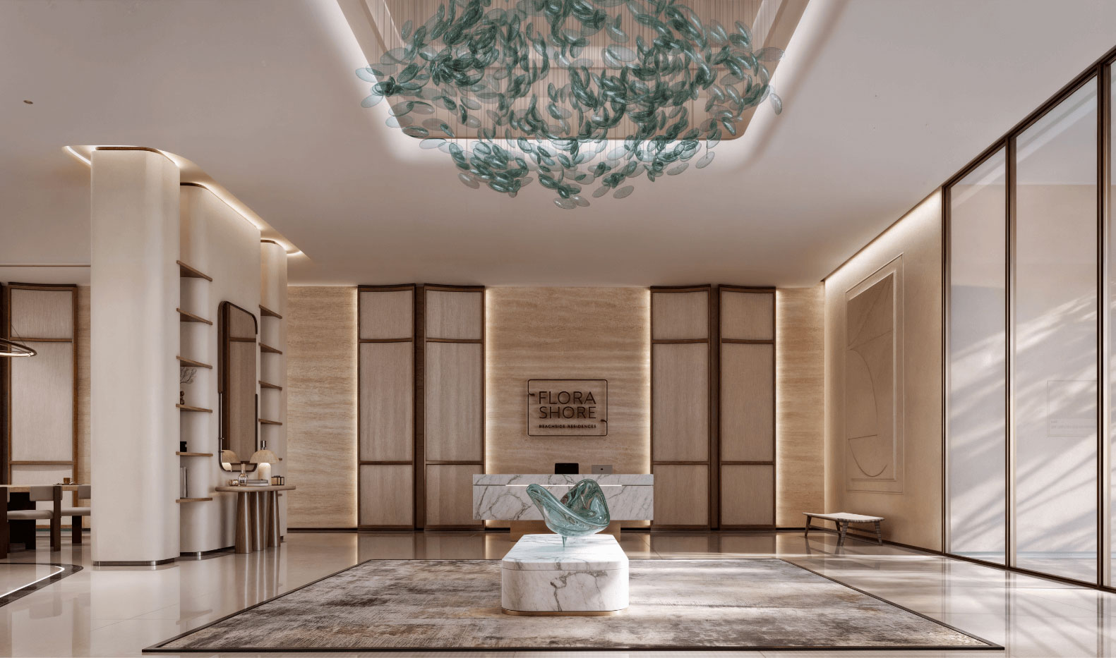 Step into Flora Shore, where the bustle of the city melts away. Here, panoramic views unfold to understated elegance that is open, yet intimate, with graceful curves and expansive spaces that welcome you into a world of refined sophistication. From its sculpted façade, to its thoughtfully designed lobby, every detail is crafted to inspire, offering a luxurious lifestyle that is unmistakably yours.